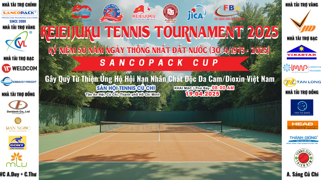 GIẢI TENNIS KEIEIJUKU 2025 – CÚP SANCOPACK Gây Quỹ Ủng Hội Nạn Nhân Chất Độc Da Cam/Dioxin