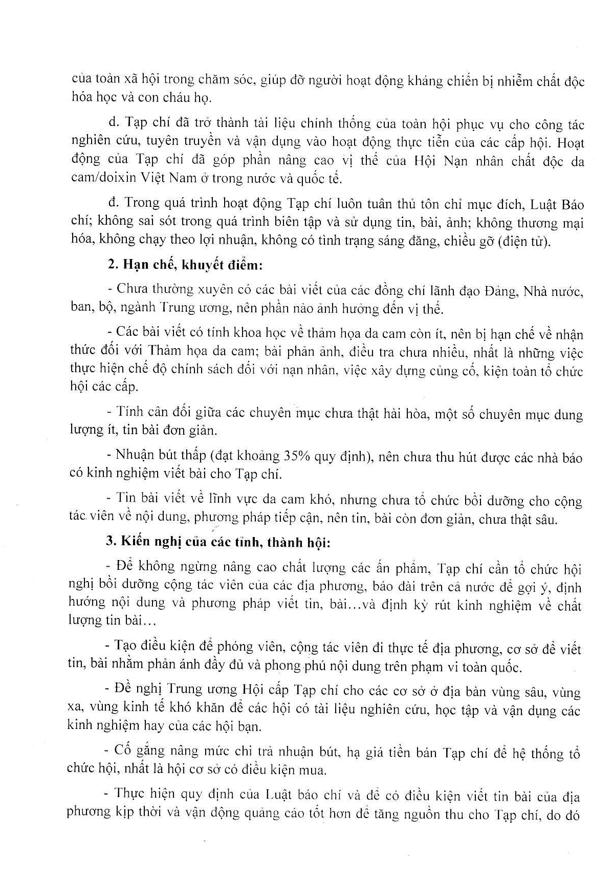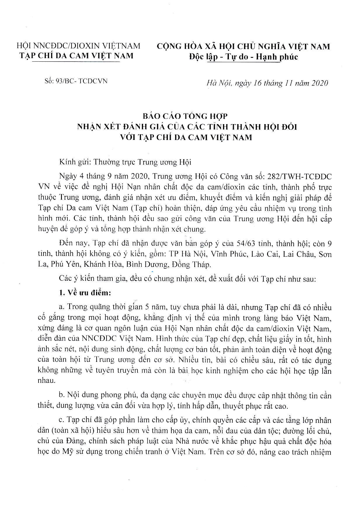 BÁO CÁO TỔNG HỢP NHẬN XÉT, ĐÁNH GIÁ CỦA CÁ TỈNH THÀNH HỘI ĐỐI VỚI TẠP CHÍ DA CAM VIỆT NAM