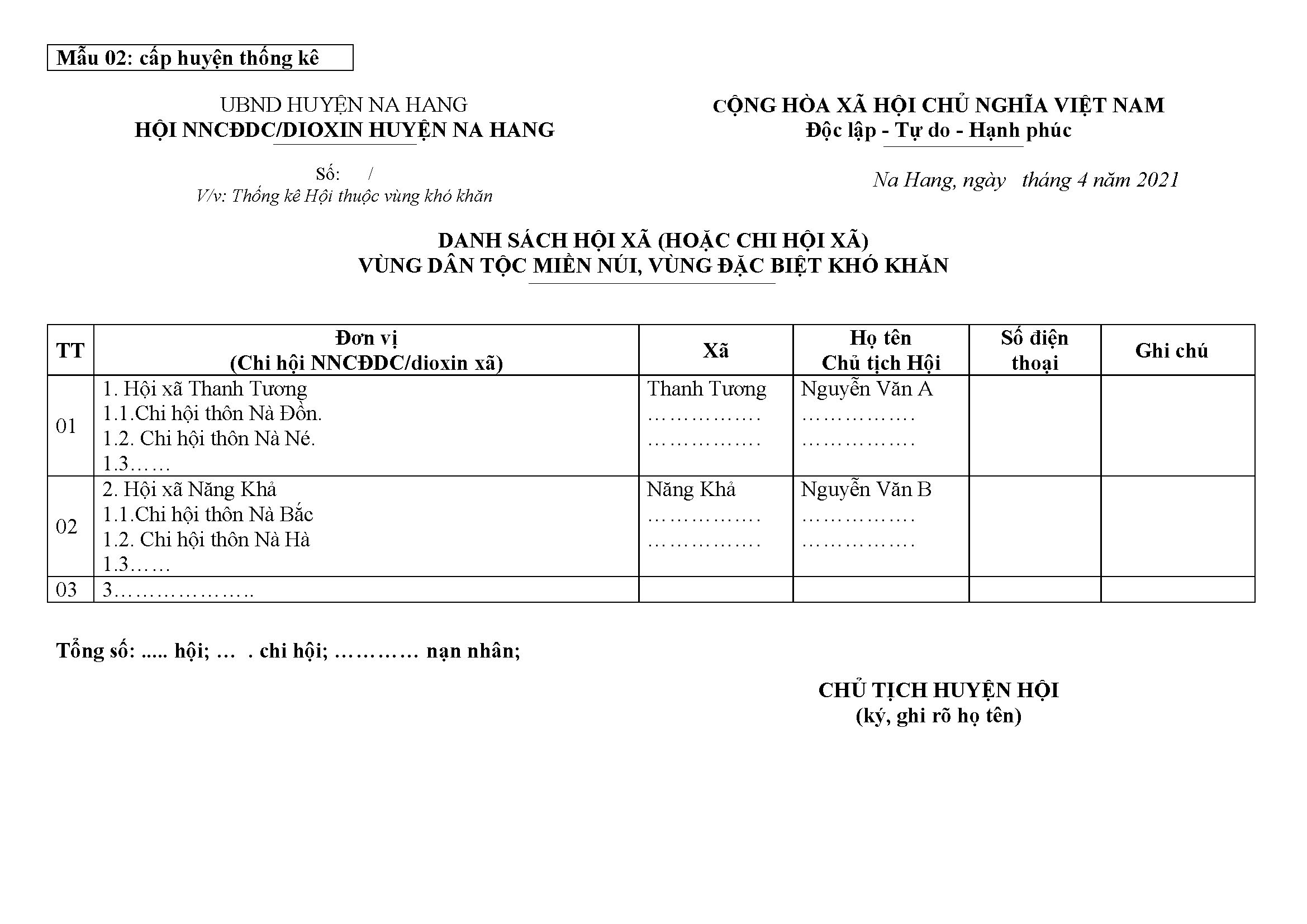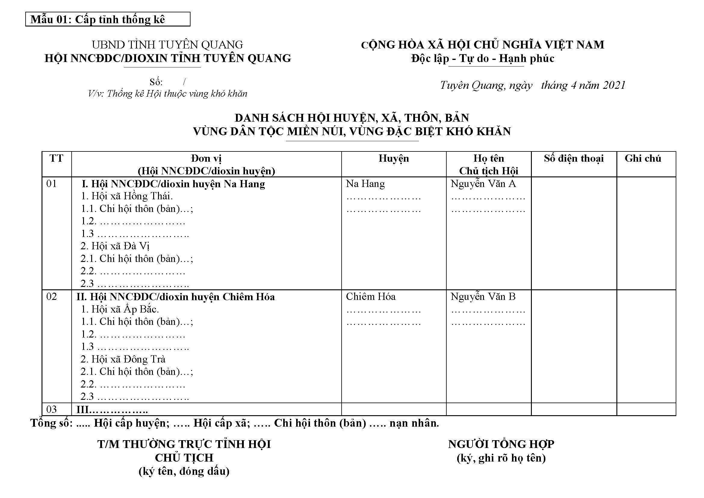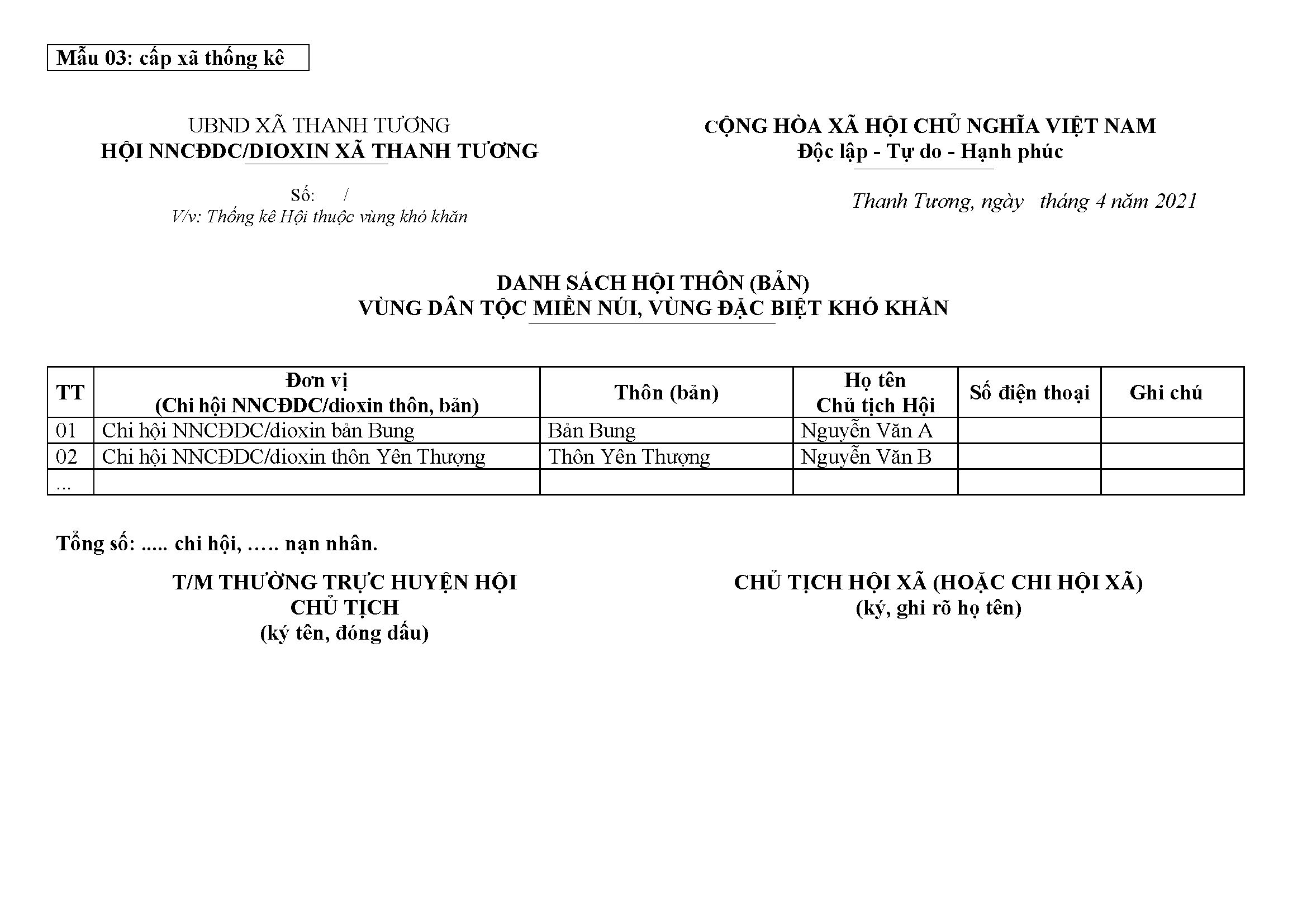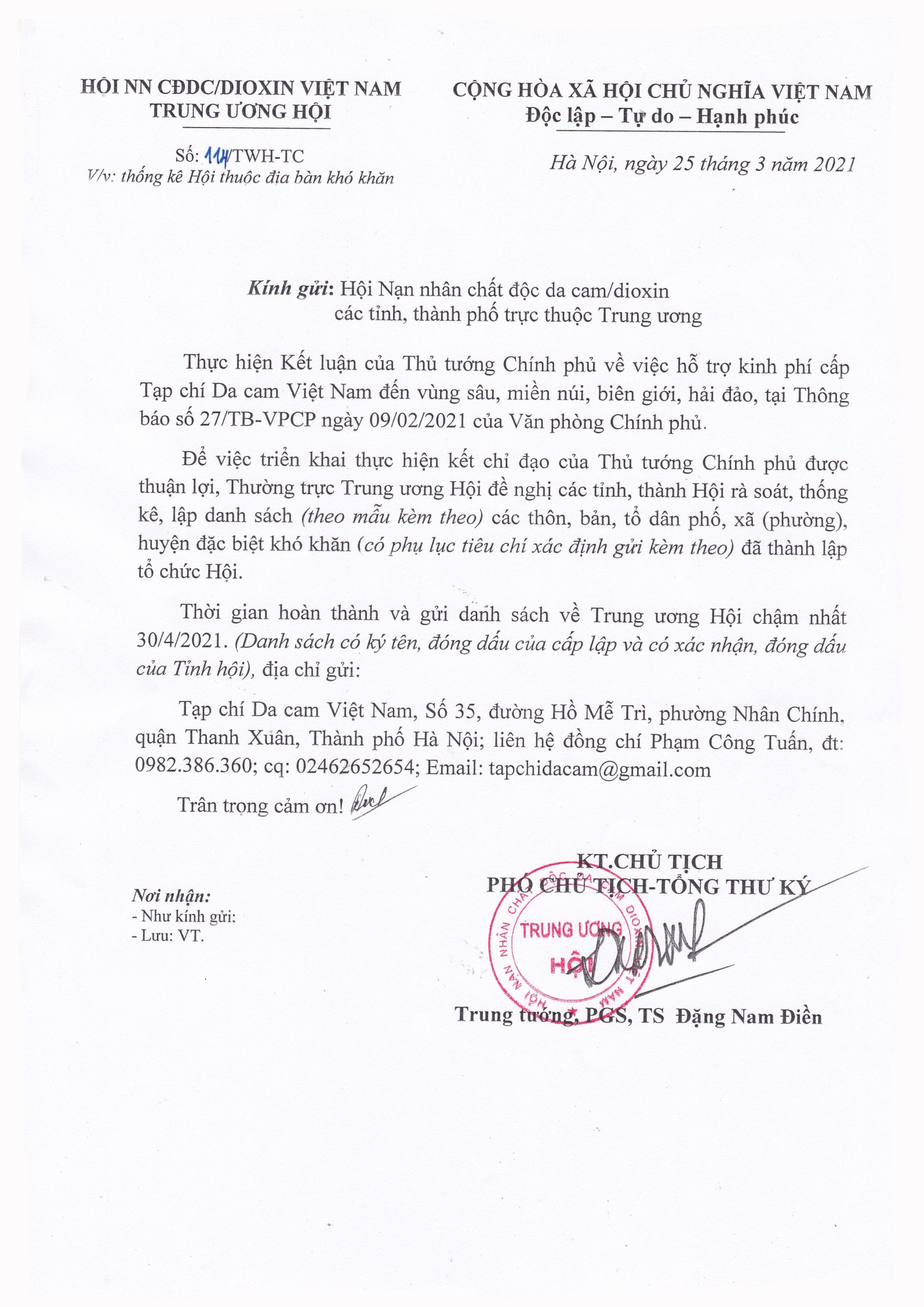 Công văn số 114/TWH-TC về việc thống kê Hội thuộc địa bàn khó khăn
