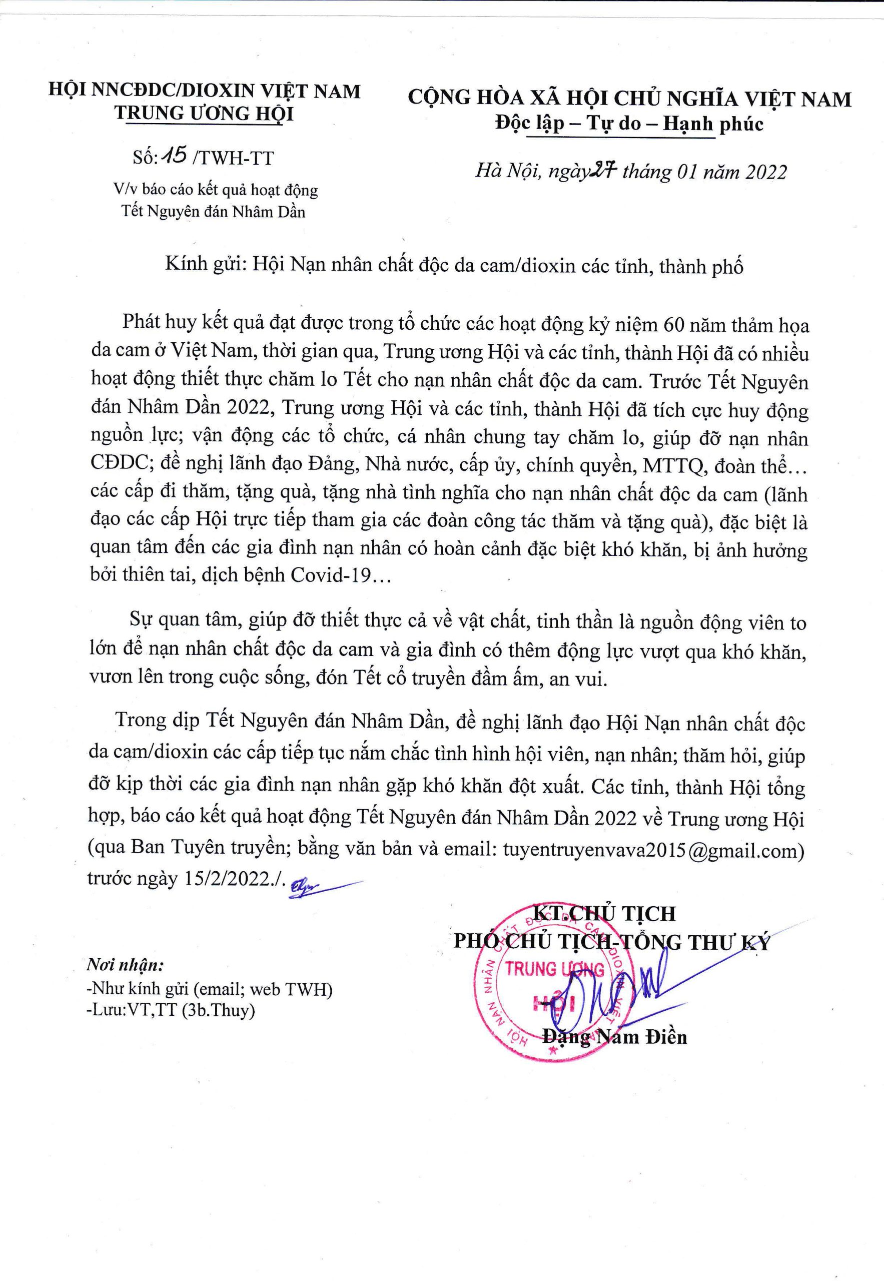 Công văn số 15/TWH-TT về việc Báo cáo kết quả hoạt động Tết Nguyên đán Nhâm Dần