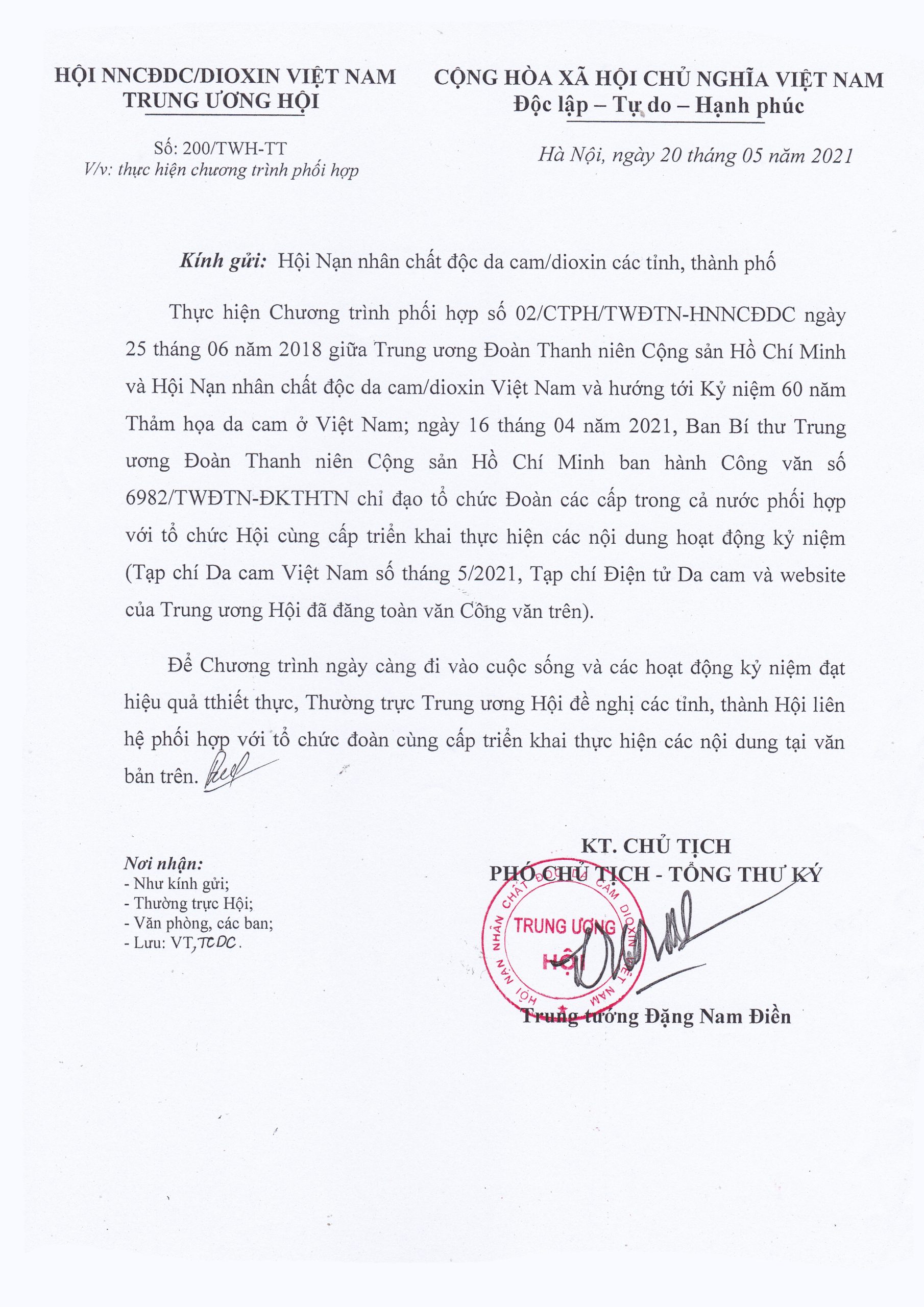 Công văn số 200/TWH-TT về việc thực hiện chương trình phối hợp với các tổ chức Đoàn cùng cấp triển khai thực hiện các nội dung theo Công văn số 6982/TWĐTN-ĐKTHTN
