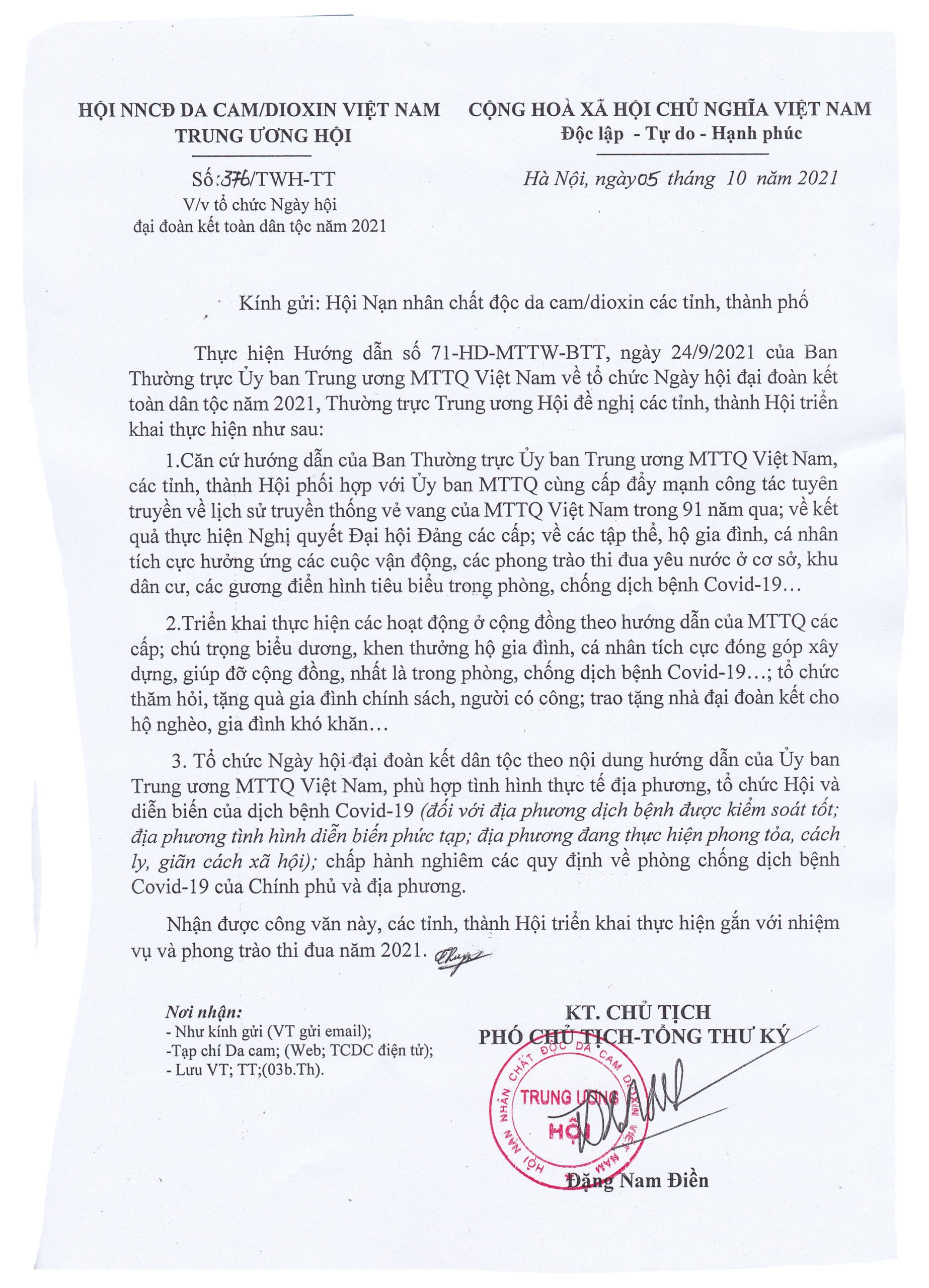 Công văn số 376/TWH-TT về việc tổ chức Ngày hội đại đoàn kết toàn dân tộc năm 2021