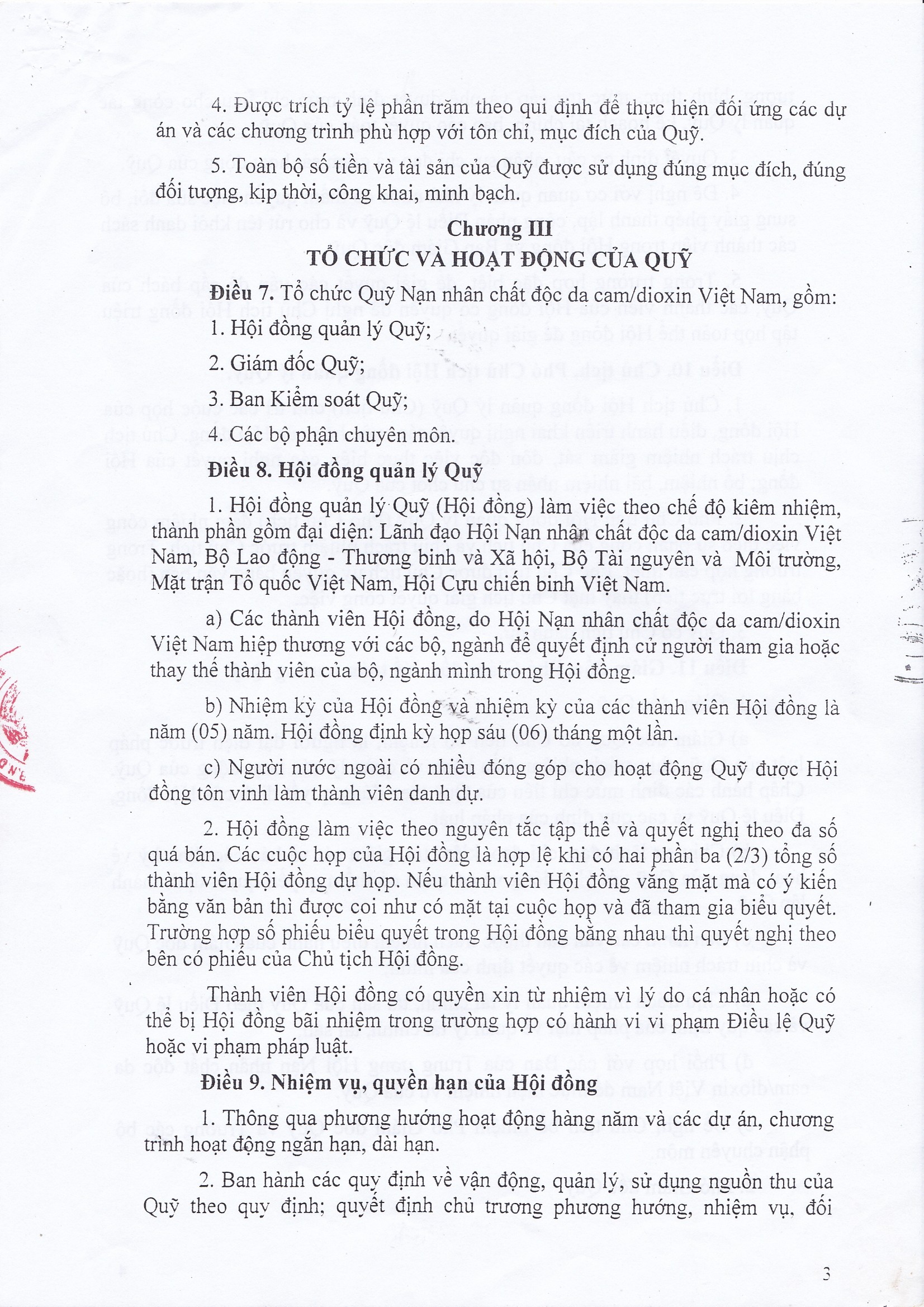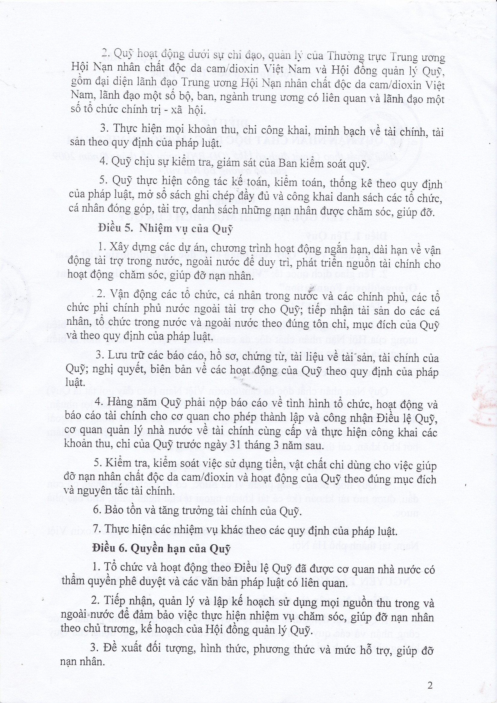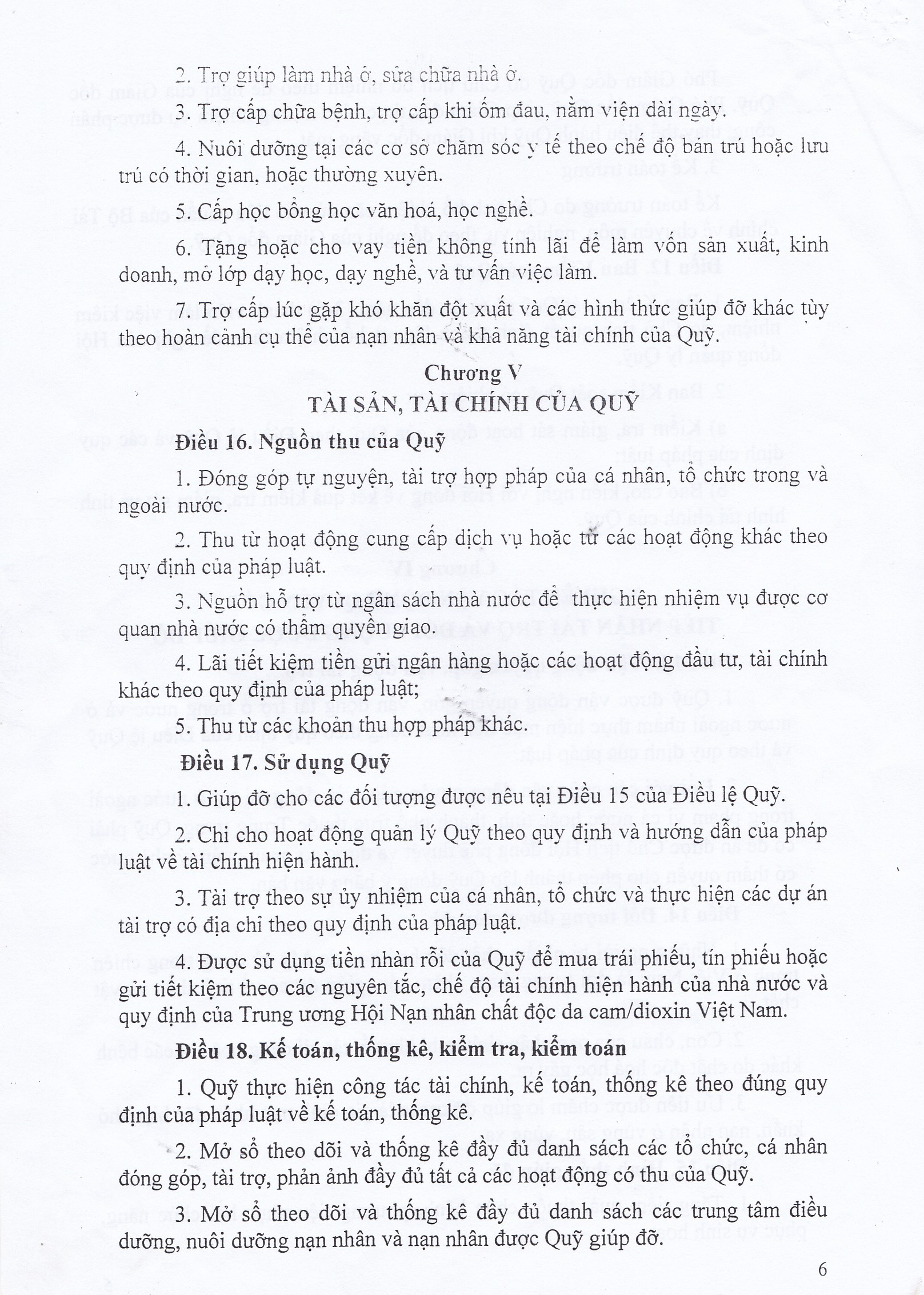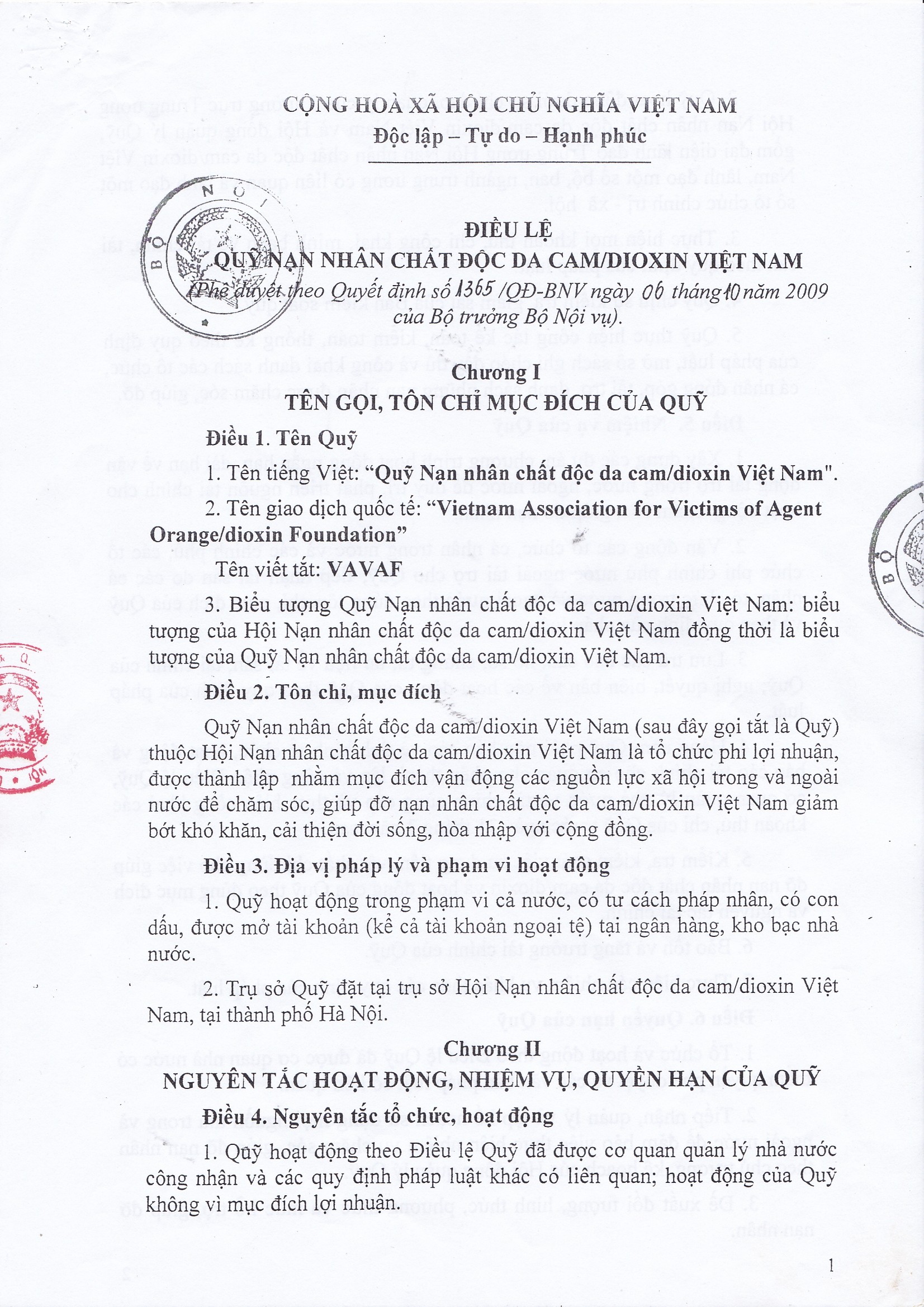 ĐIỀU LỆ QUỸ HỘI NẠN NHÂN CHẤT ĐỘC DA CAM/DIOXIN VIỆT NAM