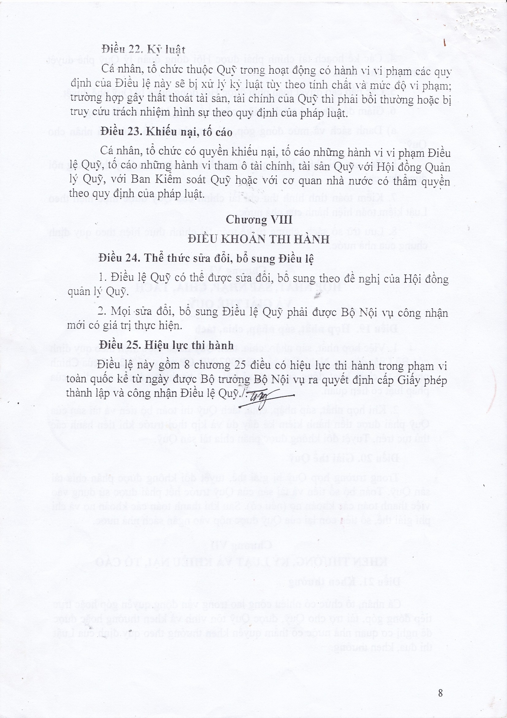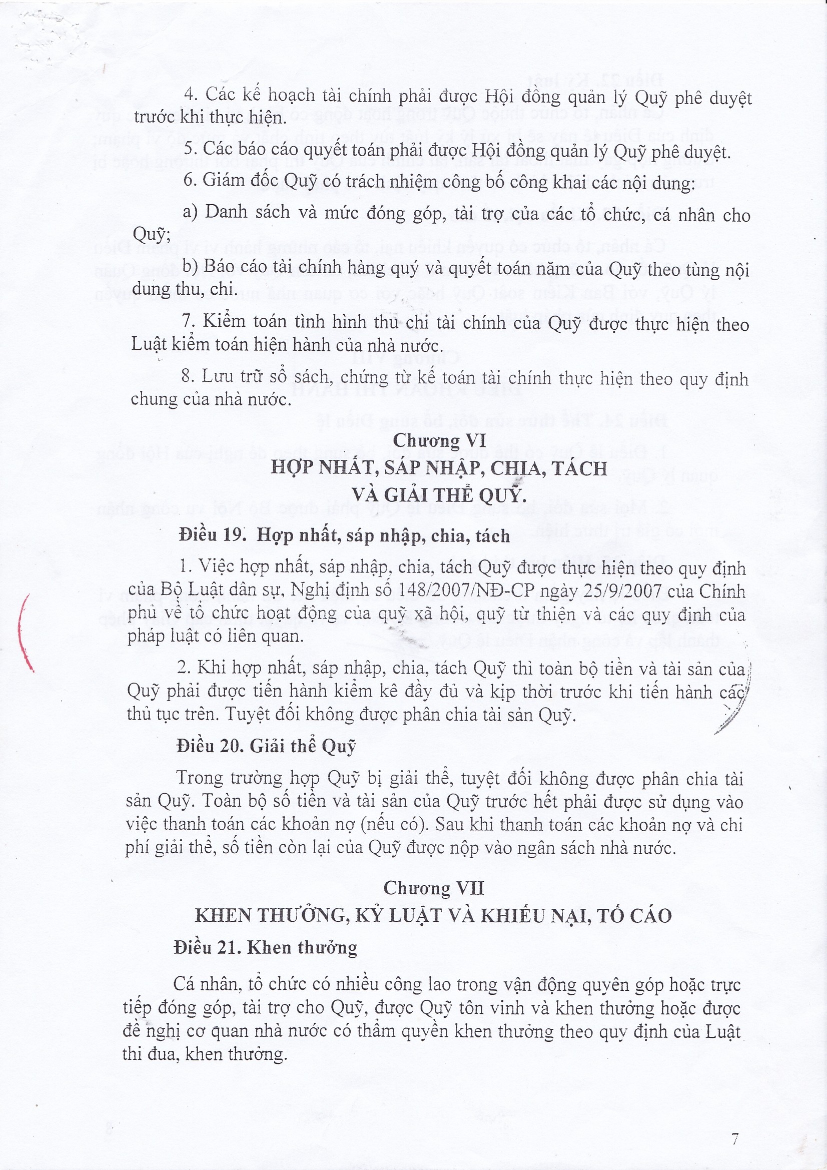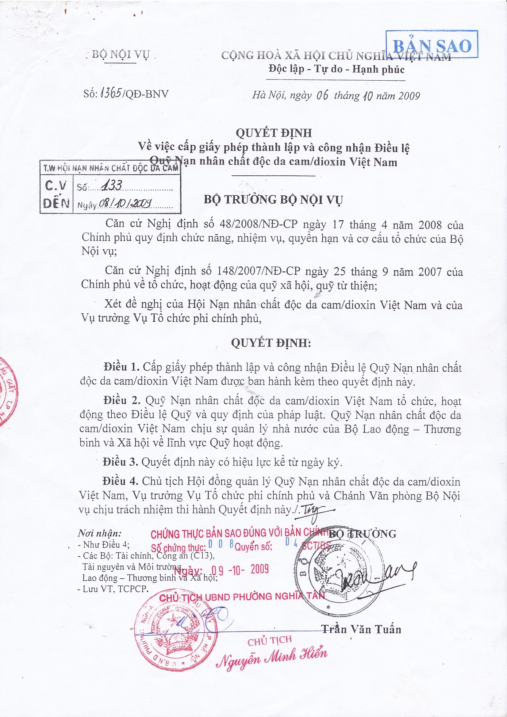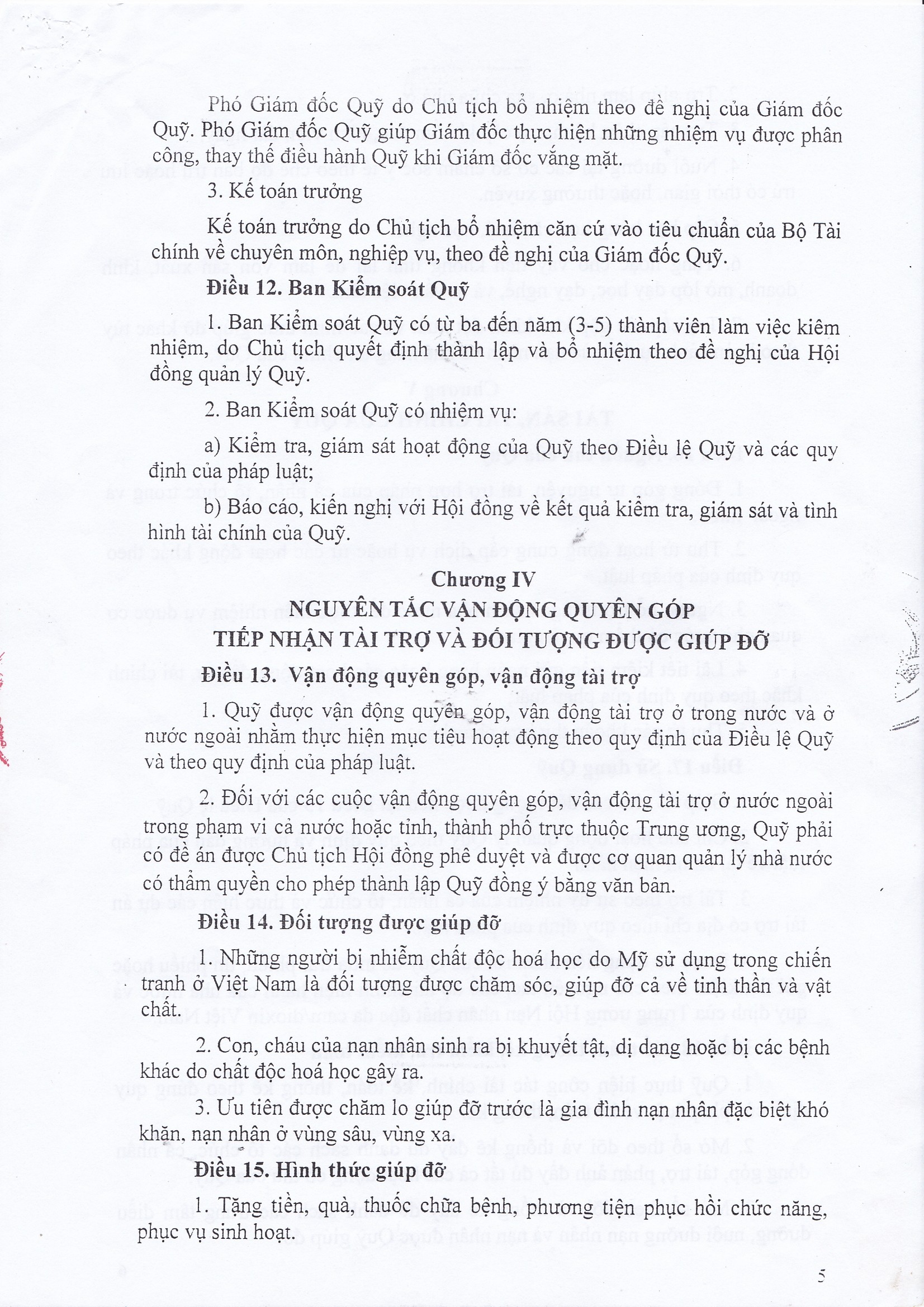 ĐIỀU LỆ QUỸ HỘI NẠN NHÂN CHẤT ĐỘC DA CAM/DIOXIN VIỆT NAM