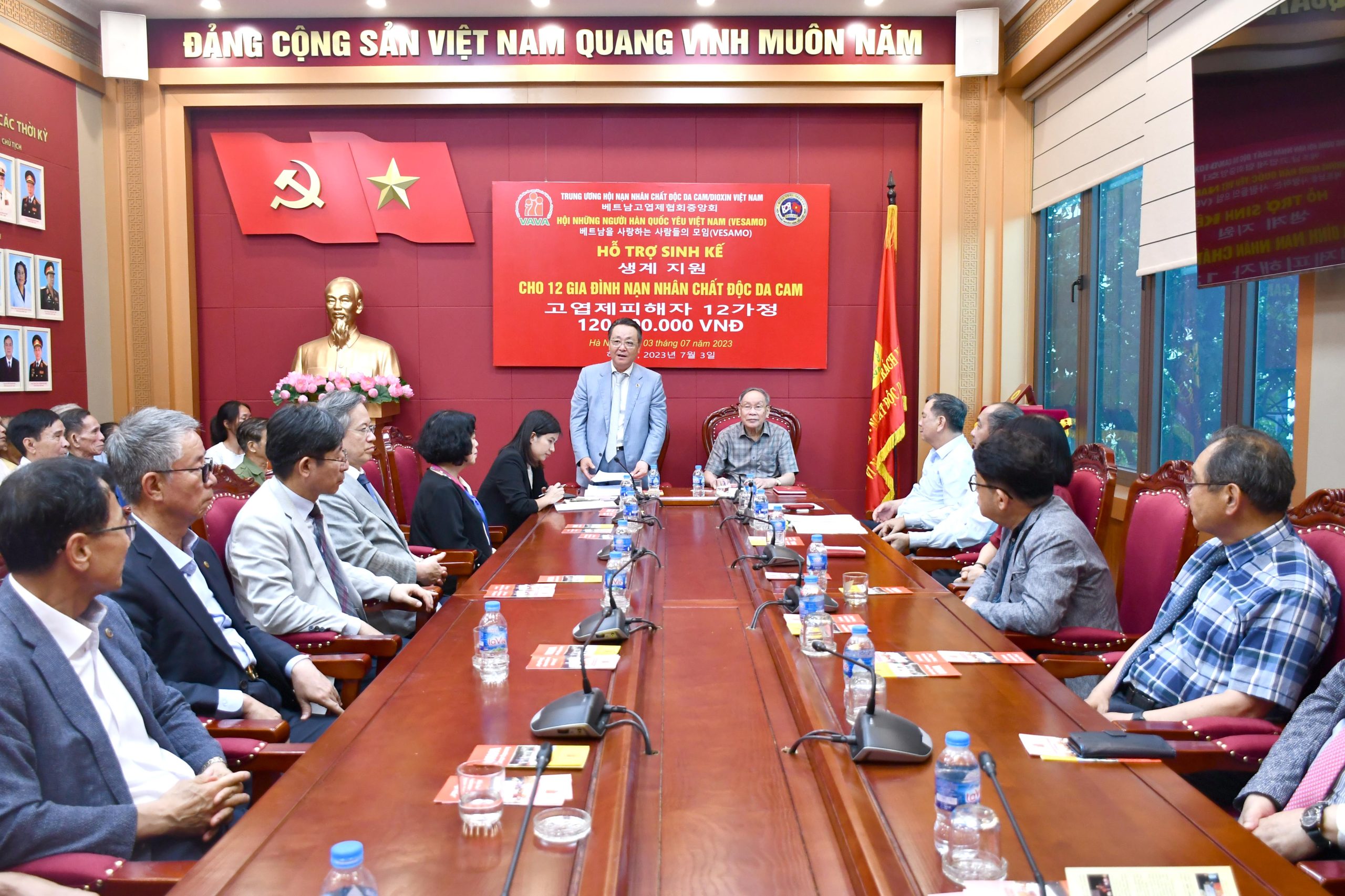 Ngày 3/7, Hội Những người Hàn Quốc yêu Việt Nam (VESAMO) do ông Chang Ho Ick, Chủ tịch Hội làm Trưởng đoàn đã đến thăm, làm việc với Trung ương Hội và tặng vốn hỗ trợ sinh kế cho NNCĐDC.