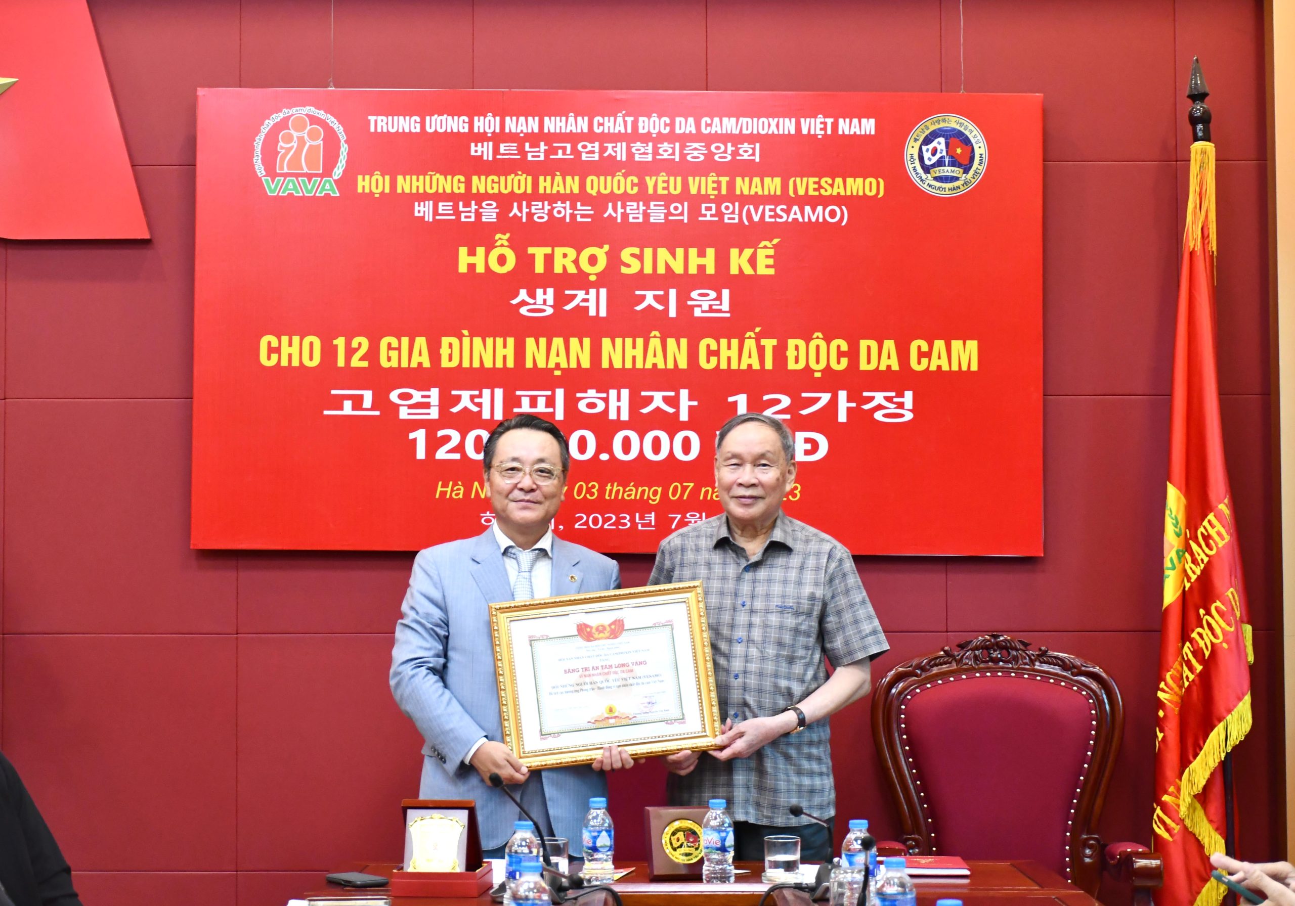 Tại buổi làm việc, Chủ tịch Chang Ho Ick gửi lời cảm ơn sự đón tiếp trọng thể mà VAVA đã dành cho VESAMO. Hội Những người Hàn Quốc yêu Việt Nam luôn thấu hiểu những đau thương, mất mát mà nhân dân Việt Nam phải gánh chịu do chiến tranh. Ông Chang Ho Ick cũng bày tỏ sự kính trọng trước những nỗ lực của VAVA cho NNCĐDC Việt Nam, đồng thời gửi lời cảm thông và chia sẻ đến NNCĐDC Việt Nam. Trong thời gian tới, VESAMO sẽ nỗ lực hơn nữa để có nhiều đóng góp cho NNCĐDC. Chủ tịch Chang Ho Ick cũng mong muốn trong thời gian sớm nhất, hai hội sẽ tổ chức hoạt động kết nghĩa, tạo sự kết nối bền vững vì NNCĐDC.