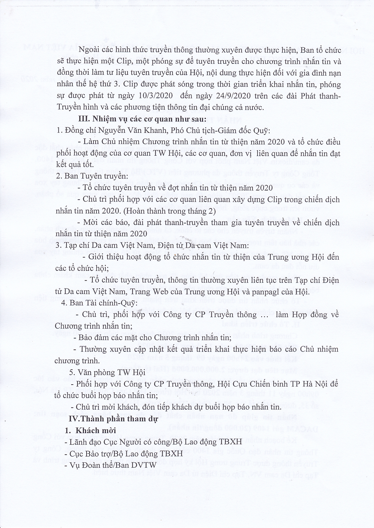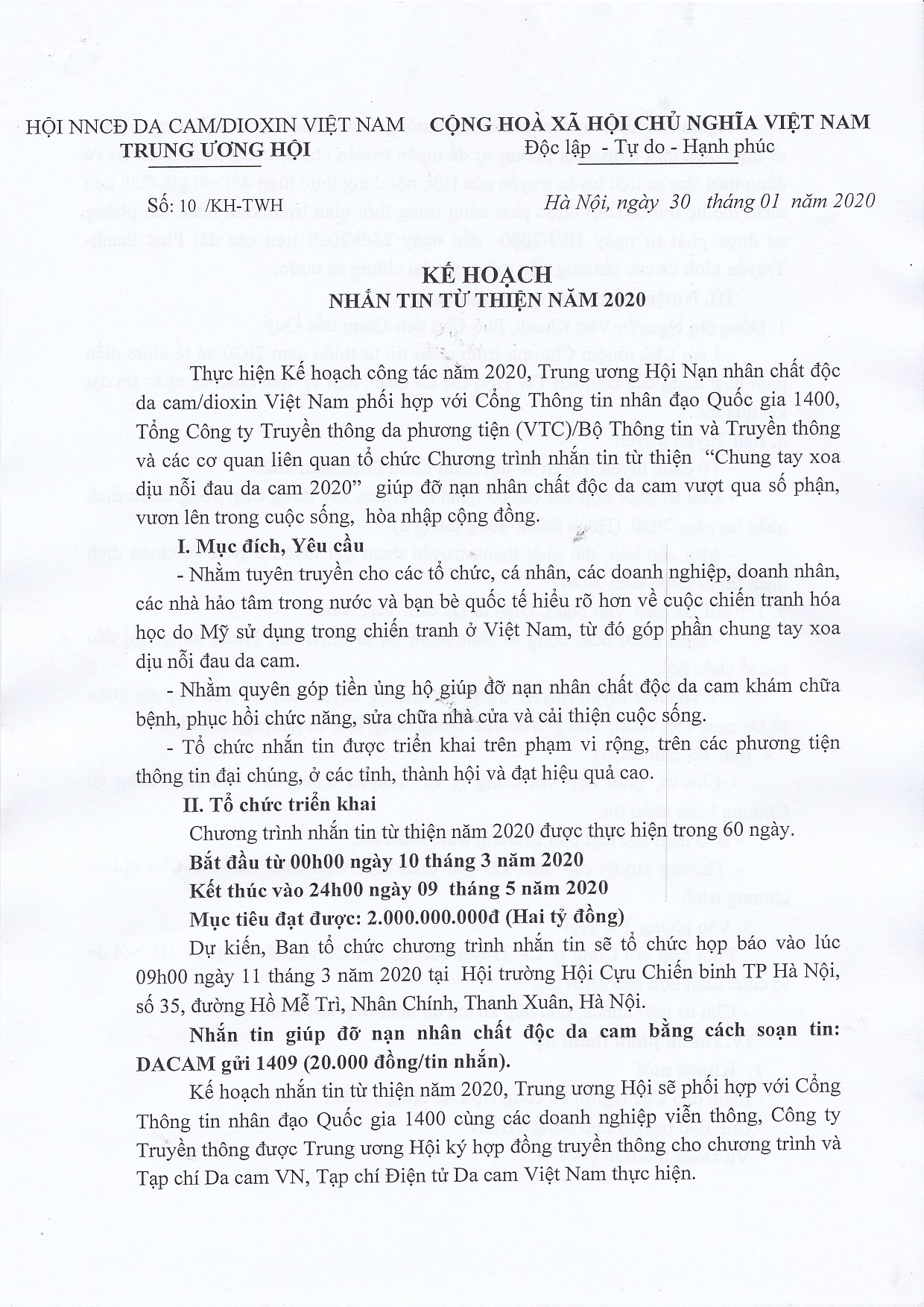 Kế hoạch Nhắn tin từ thiện năm 2020