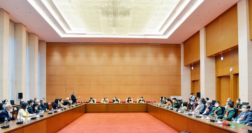 Cùng dự cuộc gặp có lãnh đạo một số cơ quan của Quốc hội; Thượng tướng Nguyễn Văn Rinh, Chủ tịch Hội NNCĐDC/dioxin Việt Nam và 55 đại biểu dự Đại hội Điển hình tiên tiến “Vì NNCĐDC” lần thứ IV, giai đoạn 2021-2026.
