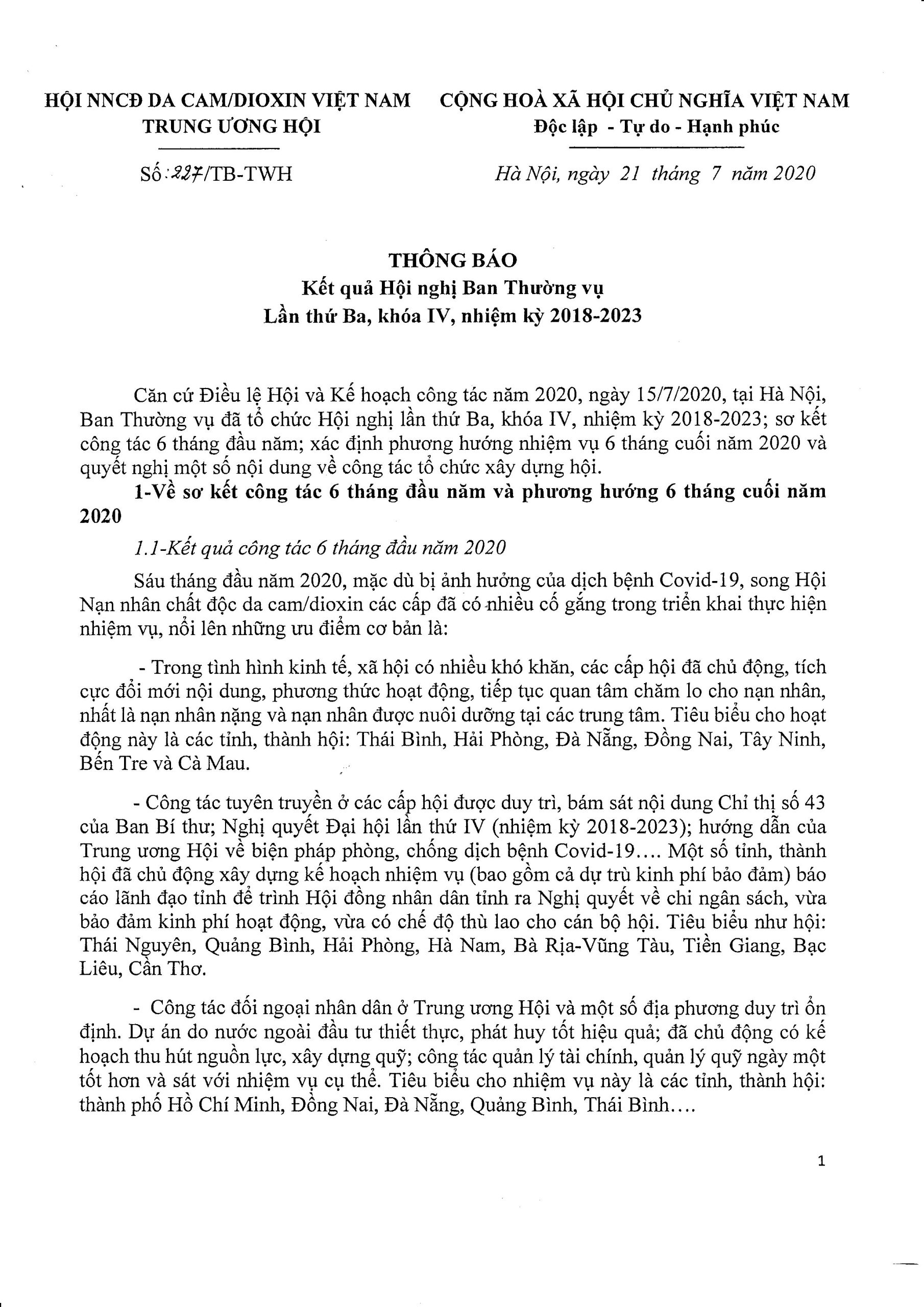 Thông báo kết quả Hội nghị Ban Thường vụ lần thứ Ba, khóa IV, nhiệm kỳ 2018 – 2023