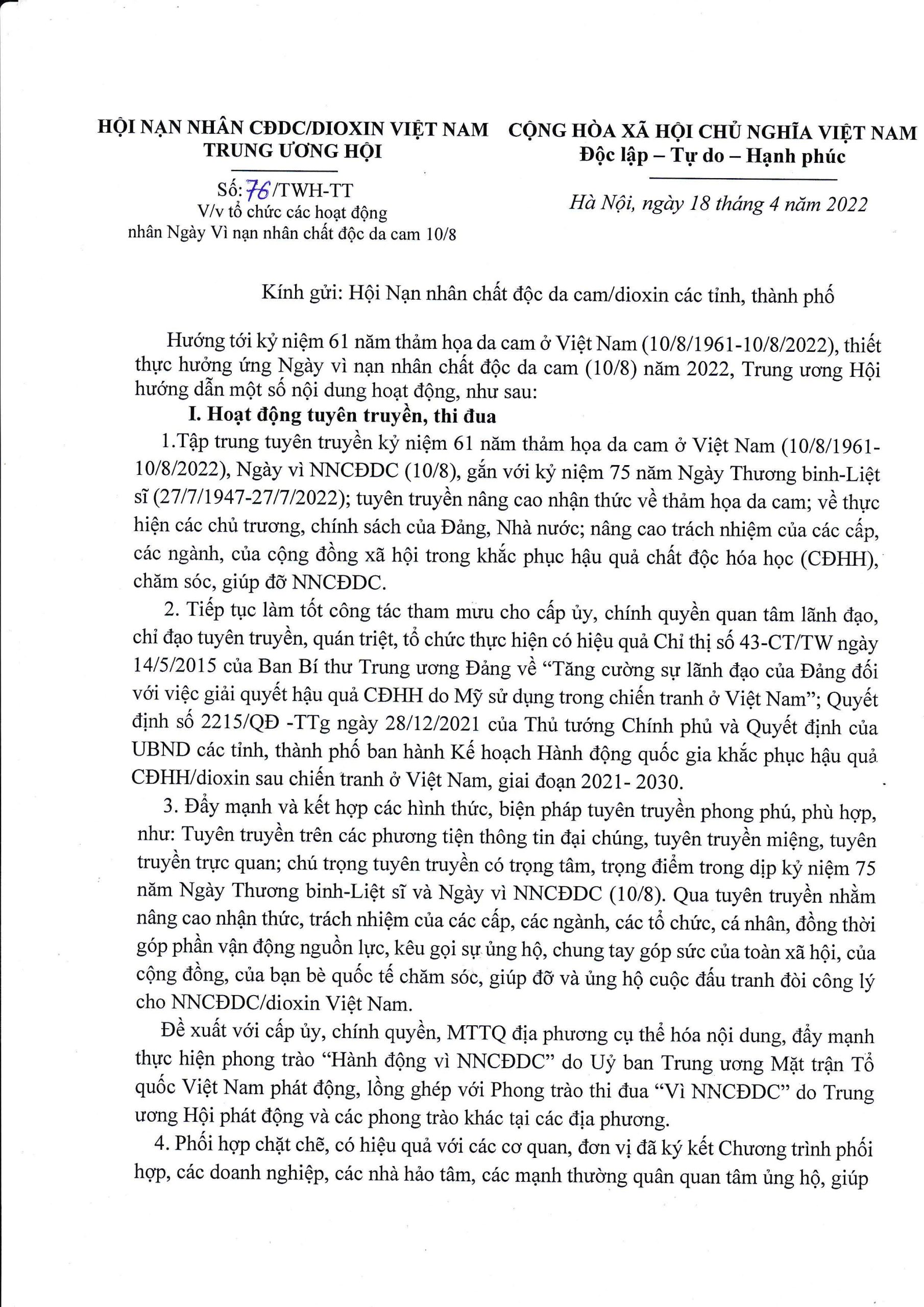 Tổ chức các hoạt động nhân Ngày Vì nạn nhân chất độc da cam 10/8